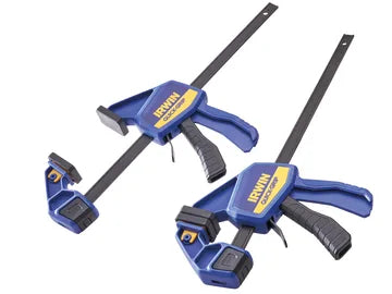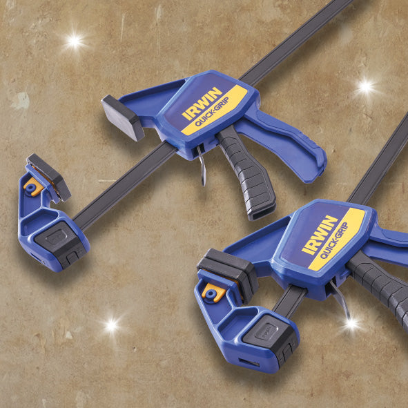 IRWIN QUICK-GRIP® Clamps can be converted from a clamp to a spreader in seconds, with a clamping hold load of 136kg. The lockable swivel jaw enables uneven surfaces to be clamped and it is fitted with square XP-style protective pads to protect the work surface from damage.